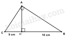 Câu 9: Cho tam giác ABC vuông tại \(A\) có đường cao AH, biết \(BH = 16\) và \(HC = 9\). Độ dài cạnh AB bằng: