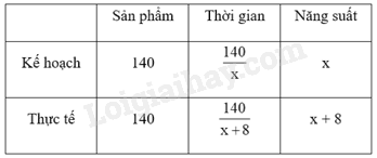 Câu 11: Một tổ công nhân theo kế hoạch phải sản xuất 140 sản phẩm trong thời gian nhất định, mỗi ngày sản xuất số sản phẩm như nhau. Thực tế mỗi ngày tổ công nhân làm thêm được 8 sản phẩm so với kế hoạch nên hoàn thành kế hoạch sớm hơn 2 ngày. Số sản phẩm phải sản xuất mỗi ngày theo kế hoạch của tổ công nhân là