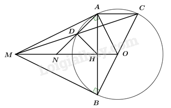 3. Gọi H là giao điểm của MO và AB. Chứng minh \({\left( {\frac{{HA}}{{HD}}} \right)^2} – \frac{{AC}}{{HN}} = 1\).