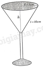 a) Chiều cao phần chứa nước của ly là: \(h = \sqrt {{{10}^2} – {4^2}} {\rm{ \;}} = \sqrt {84} {\rm{ \;}} = 2\sqrt {21} \left( {{\rm{cm}}} \right)\)