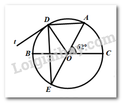 Tính được \(\angle AOD = \angle AOC = {62^0}\); \(\angle DAE = \angle EDt = {59^0}\)