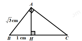 \(\begin{array}{l}\,\,\,\,\,\,\,\,A{B^2} = BH.BC\\ \Leftrightarrow BC = \dfrac{{A{B^2}}}{{BH}} = \dfrac{{{{\left( {\sqrt 3 } \right)}^2}}}{1} = 3\,\,\left( {cm} \right)\end{array}\)