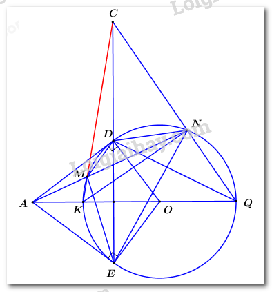 Vì \(KQ\) là đường kính của \(\left( O \right)\,\,\,\left( {gt} \right)\) \( \Rightarrow \angle KNQ = {90^0}\) (góc nội tiếp chắn nửa đường tròn) hay \(NK \bot NQ\).