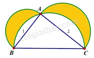 Câu 9. Cho tam giác ABC vuông tại A có AB = 6 cm, AC = 8 cm, BC = 10 cm và ba nửa hình tròn có đường kính lần lượt là AB, AC và BC (như hình dưới đây). Tính diện tích phần tô đậm.