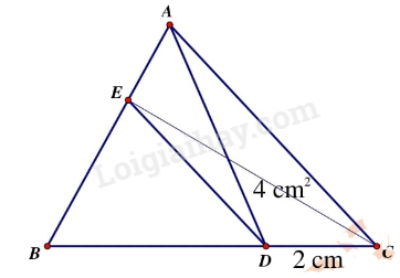 Câu 4. Cho tam giác ABC có BC = 6 cm. Trên cạnh BC lấy điểm D cách C là 2 cm. Nối A với D được tam giác ADC có diện tích bằng 4 cm2.