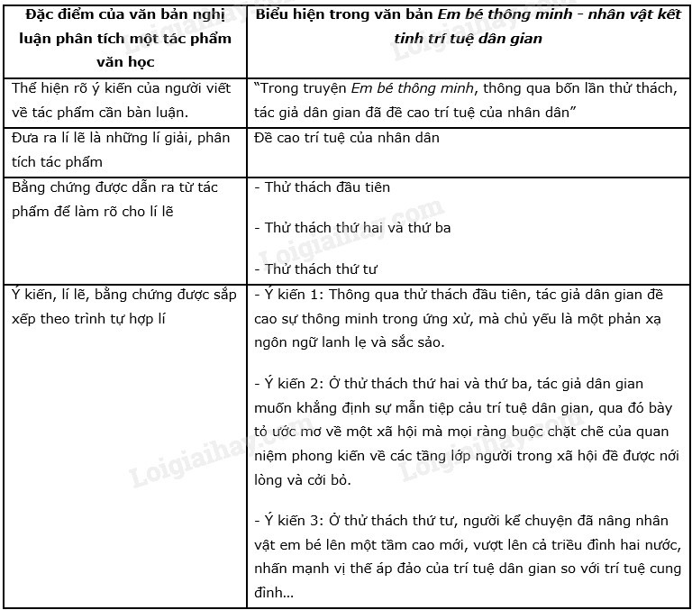 – Cách triển khai lí lẽ, bằng chứng rất chặt chẽ, tác giả cũng đưa hai thử thách vào để bình luận vì cả hai thử thách này đều do nhà vua đưa ra.