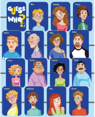 Play the game in pairs or small groups. Choose a character. The other team asks us up to five yes/ no questions to find who this character is. Then, swap roles. The one who finds the most characters in three minutes wins the game!