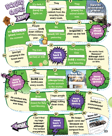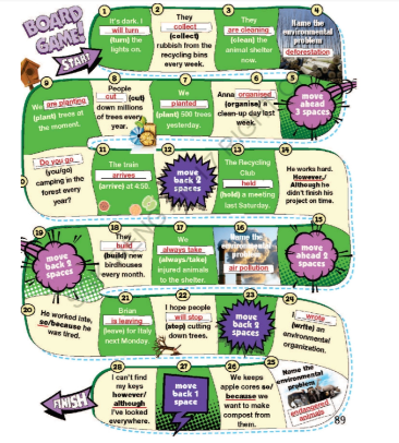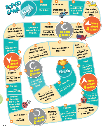Play the game in pairs or small groups. Use rubbers as makers. Roll the dice to move across the board. Answer correctly or go back one space.