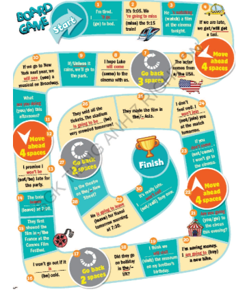(Chơi trò chơi theo cặp hoặc nhóm nhỏ. Sử dụng cao su làm vật liệu chế tạo. Lăn xúc xắc để di chuyển trên bàn cờ. Trả lời đúng hoặc quay lại.)