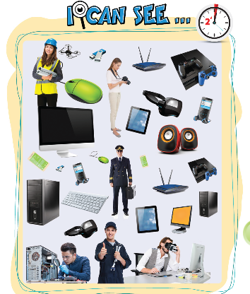 (Chơi trò chơi 7 theo cặp hoặc nhóm nhỏ. Trong hình là 8 thiết bị, 6 công việc và 7 bộ phận máy tính. Ai viết ra nhiều mục nhất trong hai phút sẽ thắng trò chơi!)