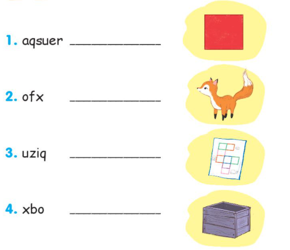 1. Rearrange the letters to make words. Then say.