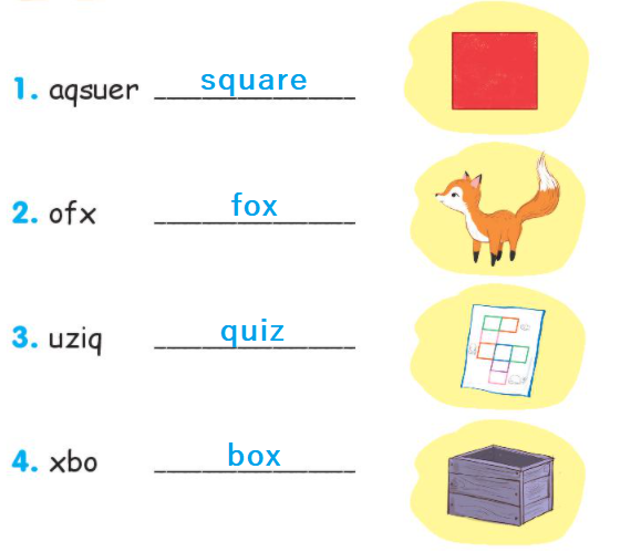 (Sắp xếp lại các chữ cái để tạo thành từ. Sau đó nói.)