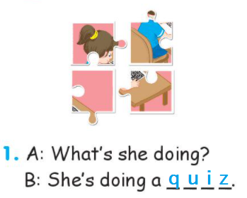 B: She’s doing a quiz.