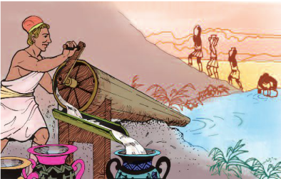 Thấy những người nông dân phải múc nước sông vào ống, rồi vác lên tưới cho ruộng nương ở tận trên dốc cao, anh thanh niên Ác-si-mét thầm nghĩ: “Liệu có cách gì để nước chảy ngược lên cho đỡ vất vả không nhỉ?”