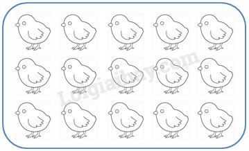 b) Đếm số gà trong hình rồi chia cho 5. Số gà cần tô màu bằng kết quả của phép chia đó.