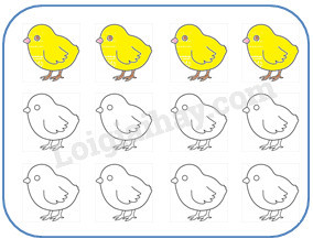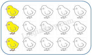 a) Đếm số gà trong hình rồi chia cho 3. Số gà cần tô màu bằng kết quả của phép chia đó.