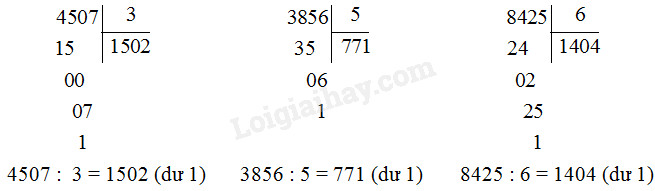 Thực hiện phép chia số có bốn chữ số cho số có một chữ số rồi viết theo mẫu.