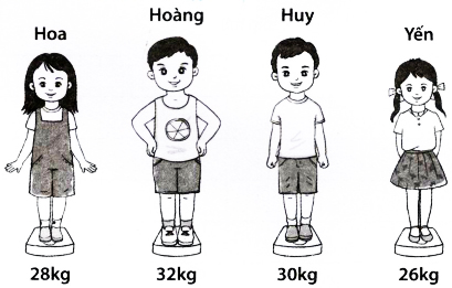 a) Bạn Hoa cân nặng 28 kg; bạn Huy cân nặng 30kg