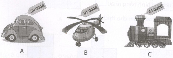 So sánh giá tiền của các loại đồ chơi rồi chọn đáp án chứa món đồ có giá tiền cao nhất.