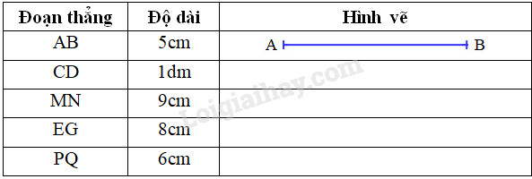 Vẽ và viết tên đoạn thẳng vào bảng (theo mẫu):