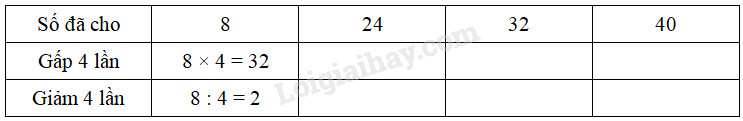 – Muốn gấp một số lên 4 lần thì ta lấy số đó nhân với 4.