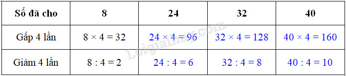 – Muốn gấp một số lên 4 lần thì ta lấy số đó nhân với 4.