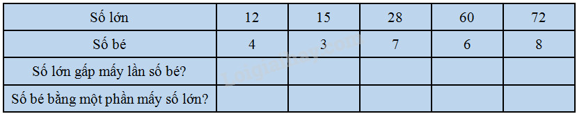 – Tìm số lớn gấp mấy lần số bé bằng cách lấy số lớn chia cho số bé.