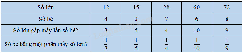 – Tìm số lớn gấp số bé mấy lần và ngược lại, số bé bằng một phần mấy số lớn.