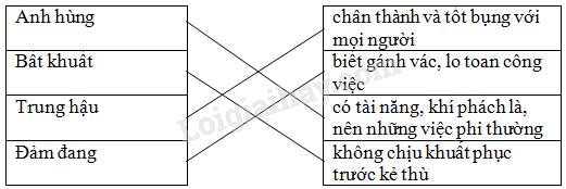 Nối những từ ngữ ở cột A với những từ ngữ ở cột B sao cho phù hợp