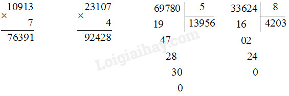 \(\begin{array}{l}10913 \times 7\\23107 \times 4\\69780:5\\33624:8\end{array}\)