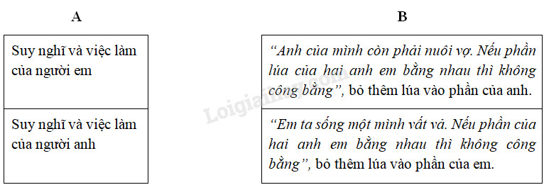 a. Nối từng ô ở cột A với ô thích hợp ở cột B đúng với suy nghĩ, việc làm của hai anh em:
