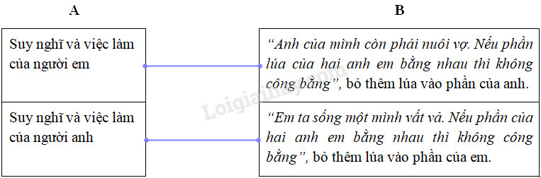 a. Nối từng ô ở cột A với ô thích hợp ở cột B đúng với suy nghĩ, việc làm của hai anh em: