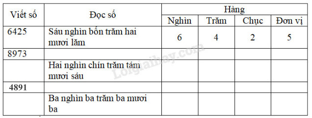 Hoàn thiện cách đọc, viết hoặc phân tích số trong bảng.