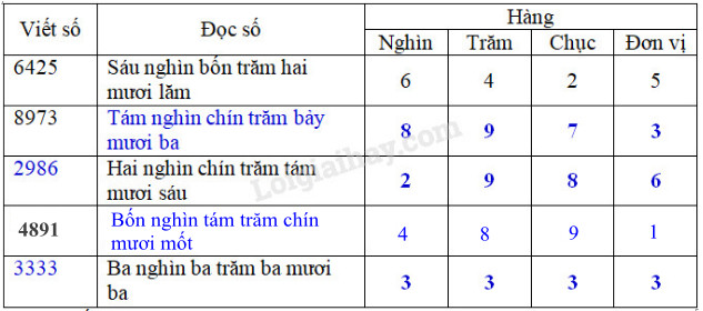 – Viết số: Lần lượt ghép các chữ số của các hàng theo thứ tự hàng nghìn, hàng trăm, hàng chục và hàng đơn vị rồi viết theo thứ tự từ trái sang phải.