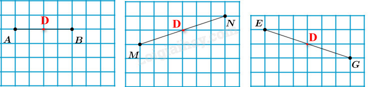 – Trung điểm của một đoạn thẳng là điểm nằm ở giữa và chia đoạn thẳng đó thành 2 phần bằng nhau.