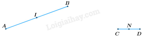 Đo rồi xác định trung điểm I của đoạn thẳng AB, trung điểm N của đoạn thẳng CD, sau đó viết số thích hợp vào chỗ chấm: