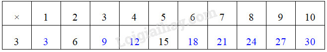 Lấy 3 nhân với từng số của hàng thứ nhất rồi viết kết quả vào ô tương ứng của hàng thứ hai.