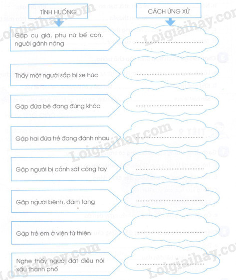 Thấy một người sắp bị xe húc phải, con hãy hét lên cho người ấy biết mà tránh. Thấy một đứa bé đứng khóc, con hãy hỏi tại sao nó khóc và an ủi nó. Thấy một cụ già đánh rơi gậy, con hãy nhặt lên và lễ phép đưa cụ.