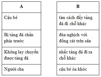 b. Tảng đá được chuyển đi vị trí khác nhờ có người cha giúp đỡ.