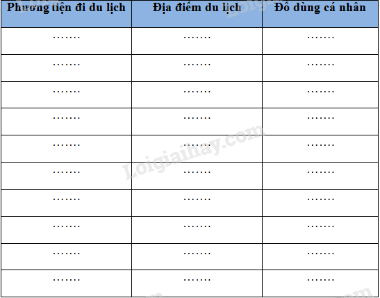 Cho các từ: xe máy, giày thể thao, xe đạp, Sa Pa, kính râm, ô tô, máy bay, quần áo, tàu hỏa, ô, Hạ Long, hồ bơi, Phú Quốc, va li.