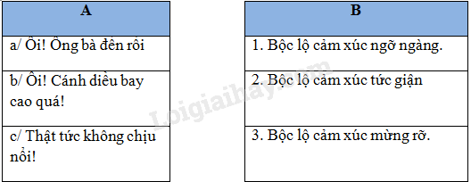 Nối câu ở cột A với nhận xét ở cột B cho phù hợp.