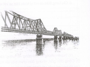 b) Cầu Long Biên bắc qua sông Hồng nối bờ Bắc của Hà Nội với phía đông. Cây cầu này vừa hùng vĩ vừa mềm mại như một con rồng sắt khổng lồ.