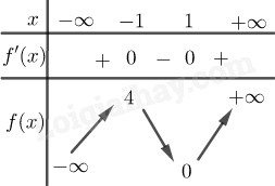 Từ bảng biến thiên ta có: