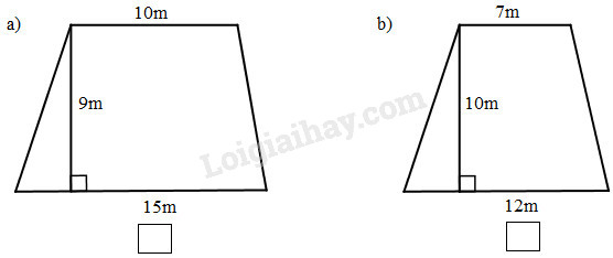Đánh dấu (×) vào ô trống dưới hình thang có diện tích nhỏ hơn 100m2.