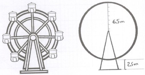 Quan sát hình vẽ ta thấy vòng quay có bán kính là \(6,5m\).