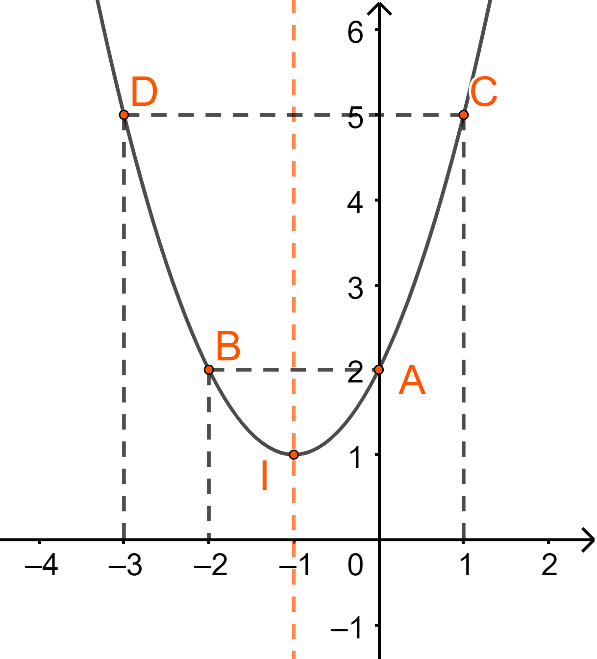+ Lấy điểm B(-2;2) đối xứng với A(0;2) qua trục đối xứng. Điểm C(1;5), D(-3;5) thuộc đồ thị.