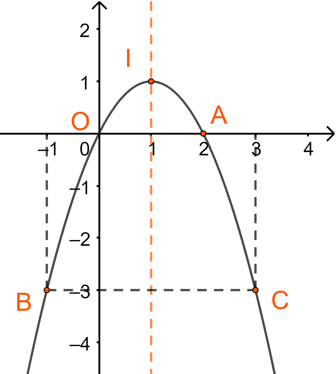 Hàm số \(y =  – {x^2} + 2x\) có \(a =  – 1,b = 2,c = 0\)