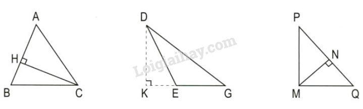 Hãy chỉ ra đáy và đường cao tương ứng được vẽ trong mỗi hình tam giác dưới đây: