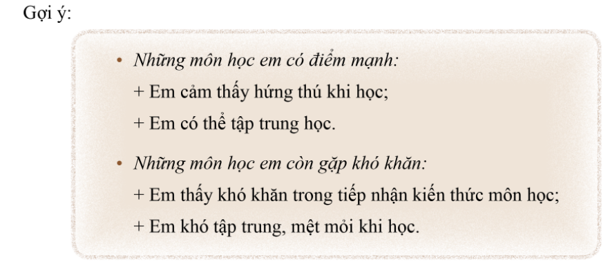 * Hãy xác định các môn học mà em có điểm mạnh và những môn học em còn gặp khó khăn.
