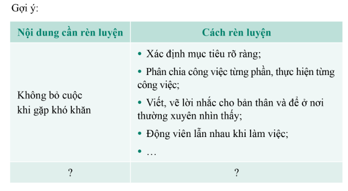 * Thảo luận cách rèn luyện tính kiên trì, chăm chỉ trong công việc.